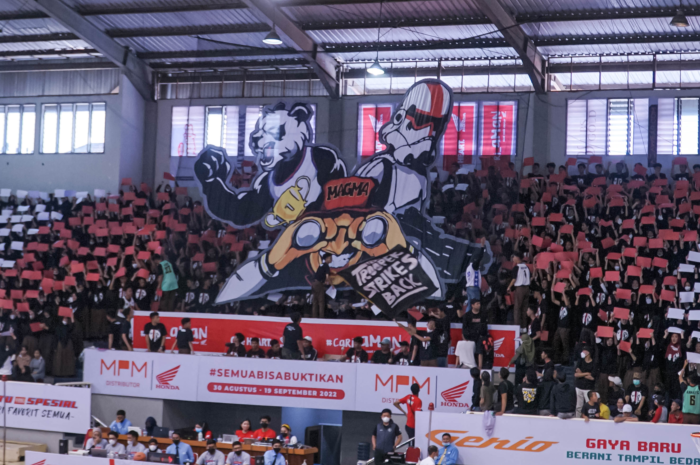 Memasuki akhir pekan, suasana GOR Bimasakti makin ramai. Bergelimang jargon menambah keseruan perhelatan Honda DBL with KFC 2022 East Java Series – South Region. Barbagai suporter memadati tribun mendukung sekolah mereka masing-masing.