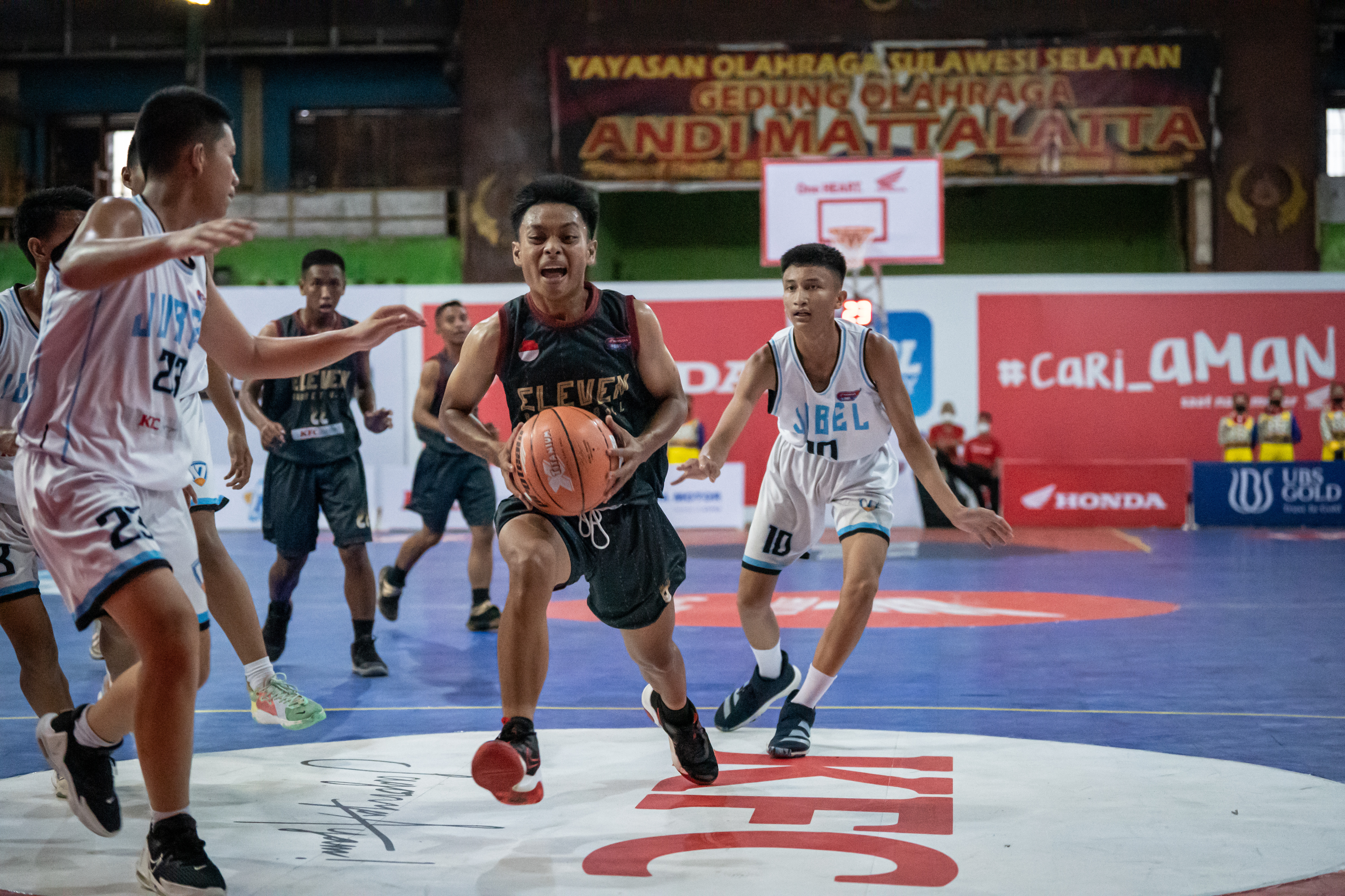 Honda DBL with KFC 2022 South Sulawesi Series 13 Oktober 2022 semakin seru. Gim ketiga menghadirkan SMAN 11 Makassar dan SMAN 17 Makassar. Dominasi terlihat dari permainan Smanses -sebutan SMAN 11 Makassar- sejak awal. Gim pun dimenangkan mereka dengan skor 39-26.