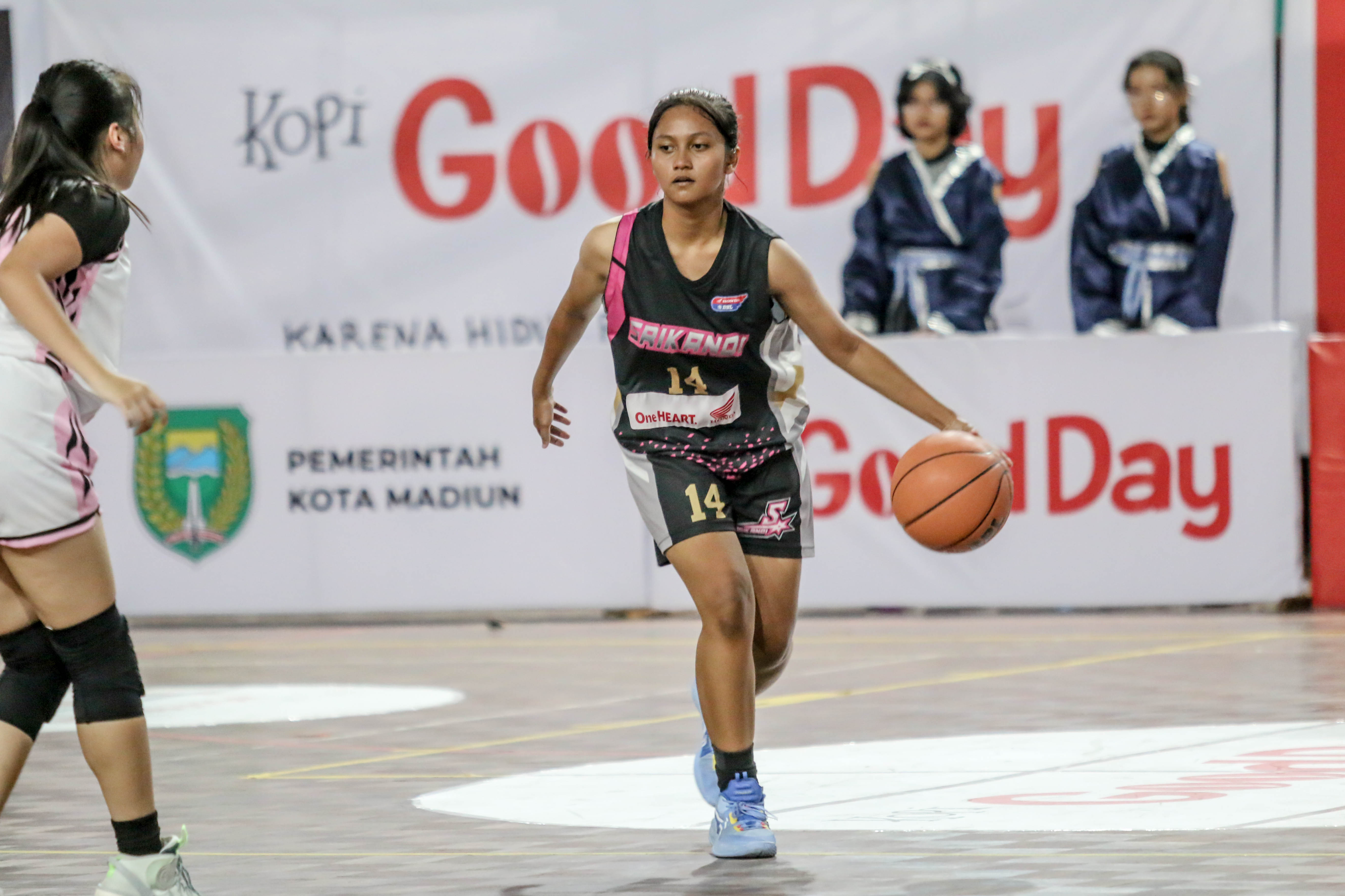 Tegang. Laga perdana Opening Party Honda DBL with Kopi Good Day 2023 East Java Series-West Region antara tim putri Smada Madiun (SMAN 2 Madiun) melawan Srikandi (SMKN 1 Madiun) berlangsung sengit.