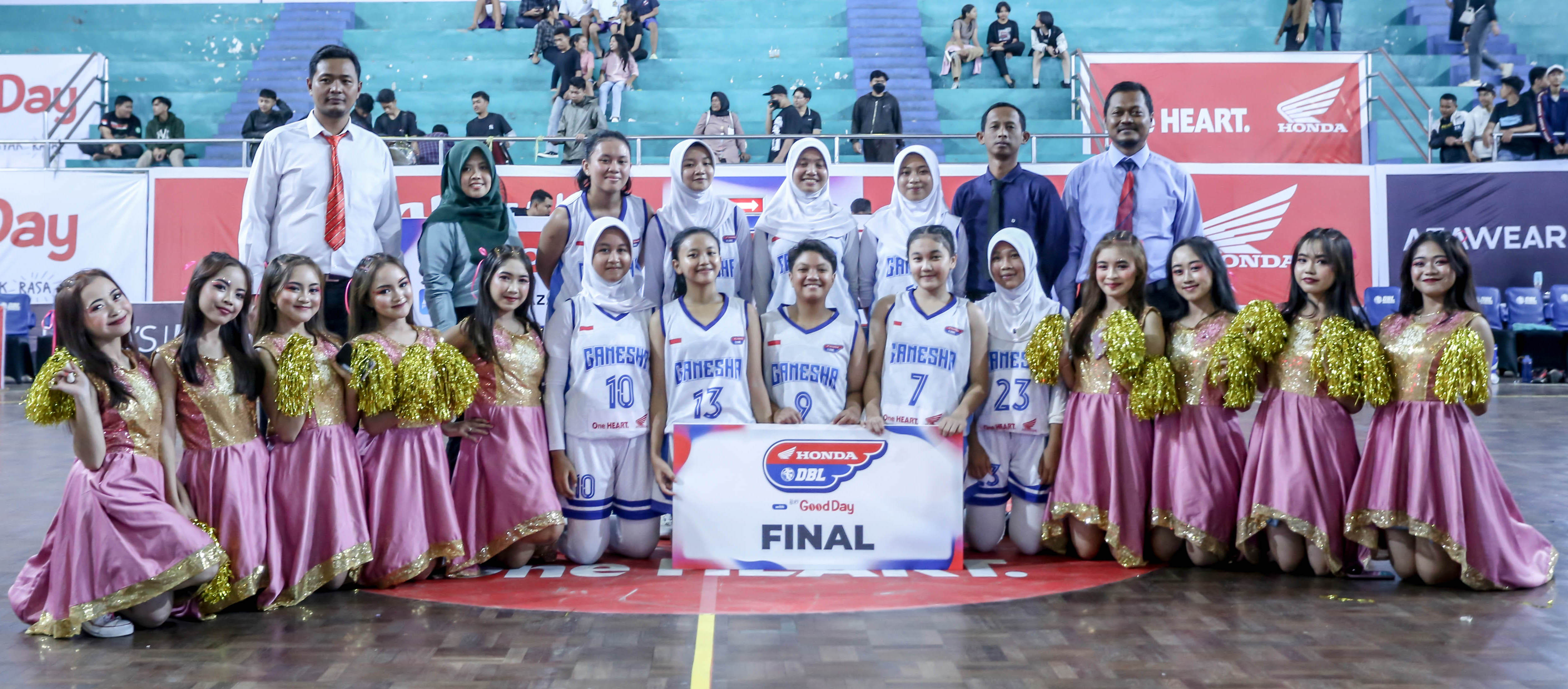 Solid. Putri Ganesha (sebutan SMAN 1 Ponorogo) sukses terbang ke Final Party Honda DBL with Kopi Good Day 2023 East Java Series-West Region. Pada laga bertajuk Fantastic Four, Kamis, 17 Agustus mereka berhasil menang dengan skor akhir 50-27.