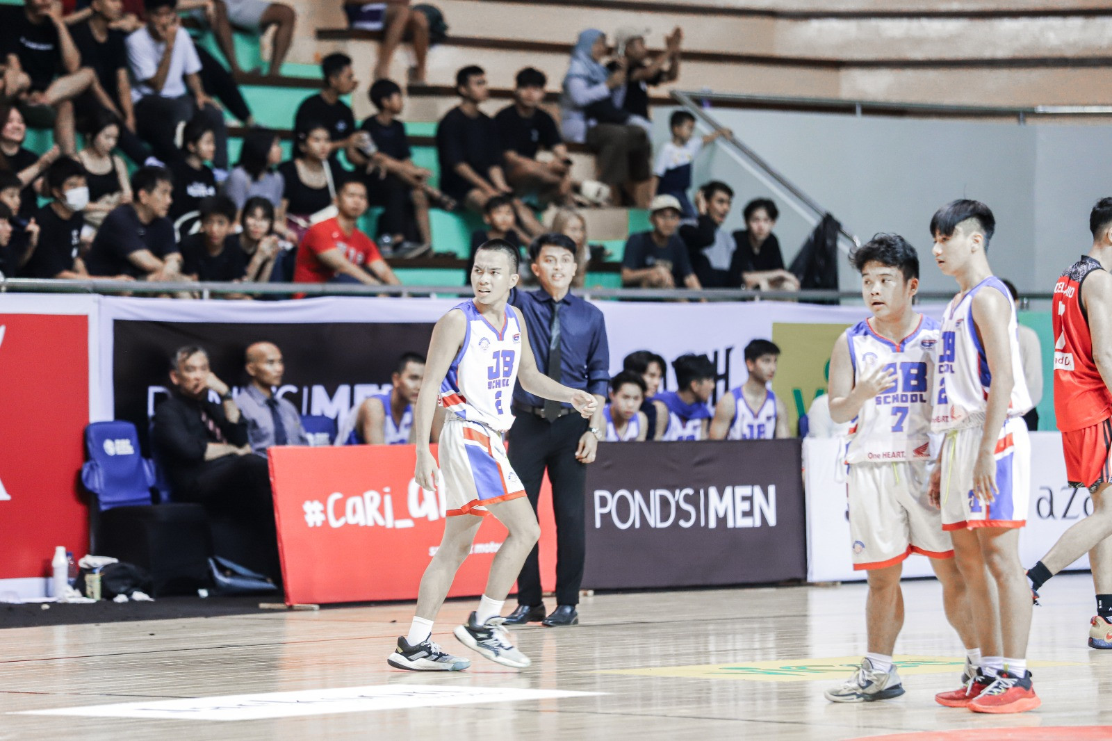 Yup, pasukan SMAN 7 Denpasar memegang kendali permainan pada dua kuarter tersebut. Bahkan mereka berhasil memaksa anak-anak JB hanya mencetak empat poin di kuarter pertama.
