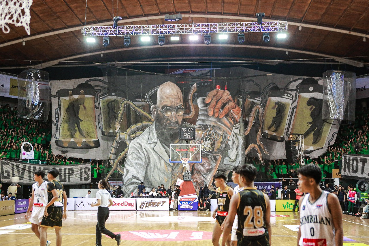Tribun D DBL Arena tak hentinya bergemuruh. Pasukan berseragam hijau yang dengan lantang menyuarakan berbagai nyanyian dengan begitu riuh. Mereka adalah Songomania. Barisan pendukung SMAN 9 Surabaya ini datang memenuhi sisi selatan DBL Arena dengan begitu banyaknya seraya memberikan semangat membara.