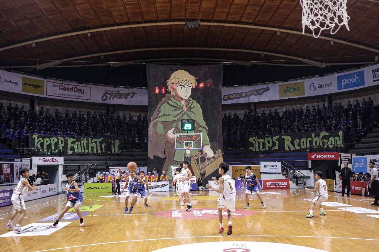 Sixteenagers, suporter SMA Negeri 16 Surabaya tidak pernah absen untuk mendukung sekolahnya ketika bertanding di Honda DBL with Kopi Good Day 2025 East Java-North (DBL Surabaya), Rabu, 8 Oktober 2025. Sixteen menutup pertandingan hari ini dengan kemenangan yang epic setelah berhasil mengalahkan SMA Cita Hati West dengan skor 21-16.