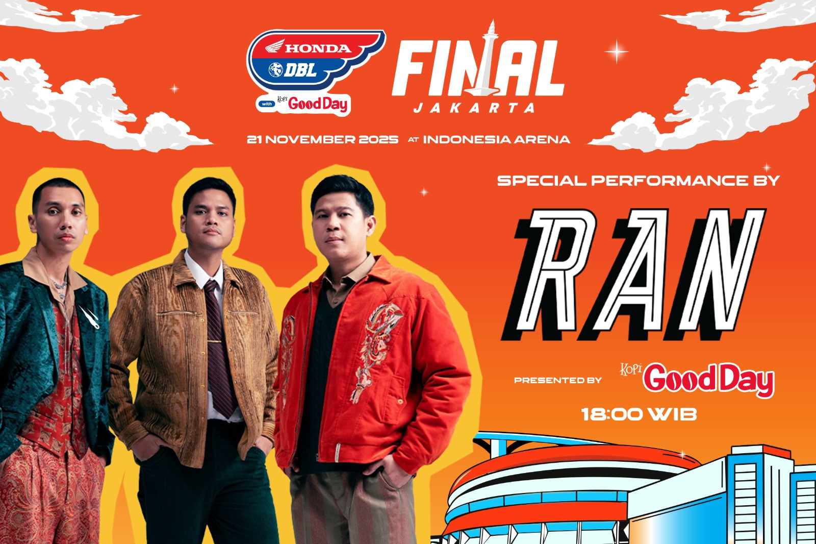 Namun, keseruannya nggak berhenti di situ. Final DBL Jakarta bukan cuma soal adu gengsi di lapangan. Ada juga sederet hiburan yang siap bikin suasana makin pecah. Salah satunya, penampilan spesial dari RAN!