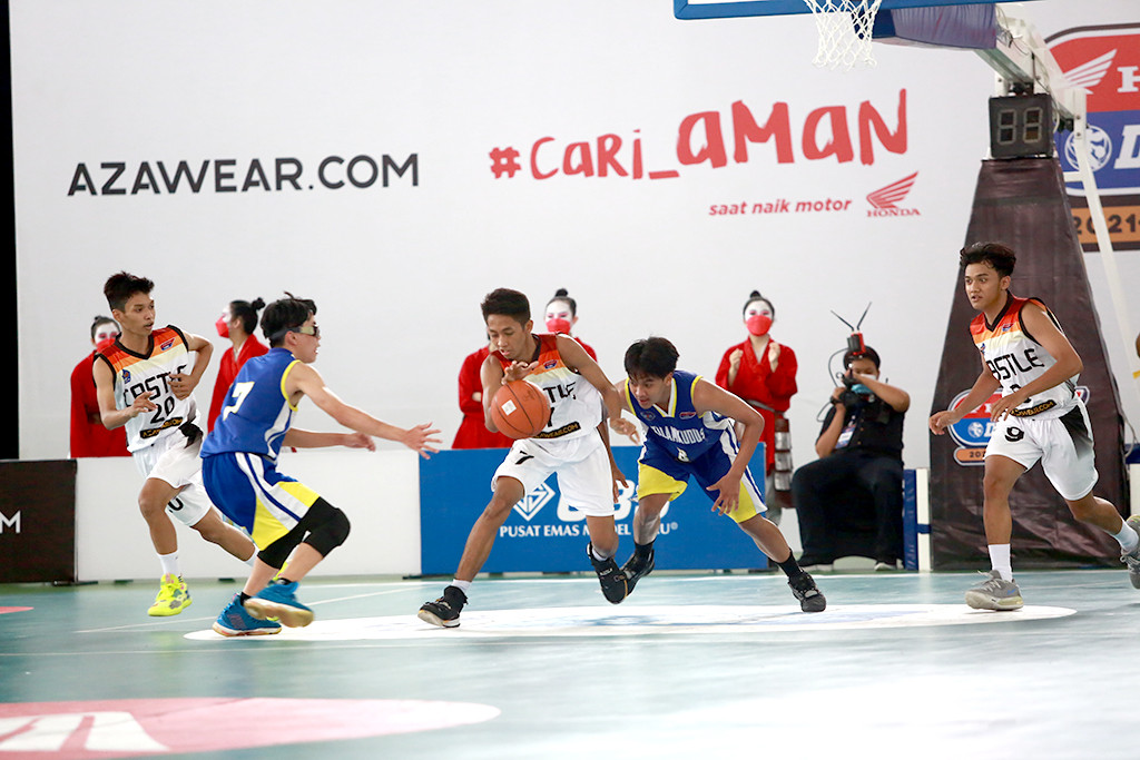 Lanjutan laga Honda DBL 2021 East Java Series, Minggu (31/10) mempertemukan SMAN 1 Puri Mojokerto (Castle) menghadapi SMA Kalam Kudus Malang (SKK). SMAN 1 Puri Mojokerto mendominasi di laga itu dan memenangkan pertandingan, 48-29.