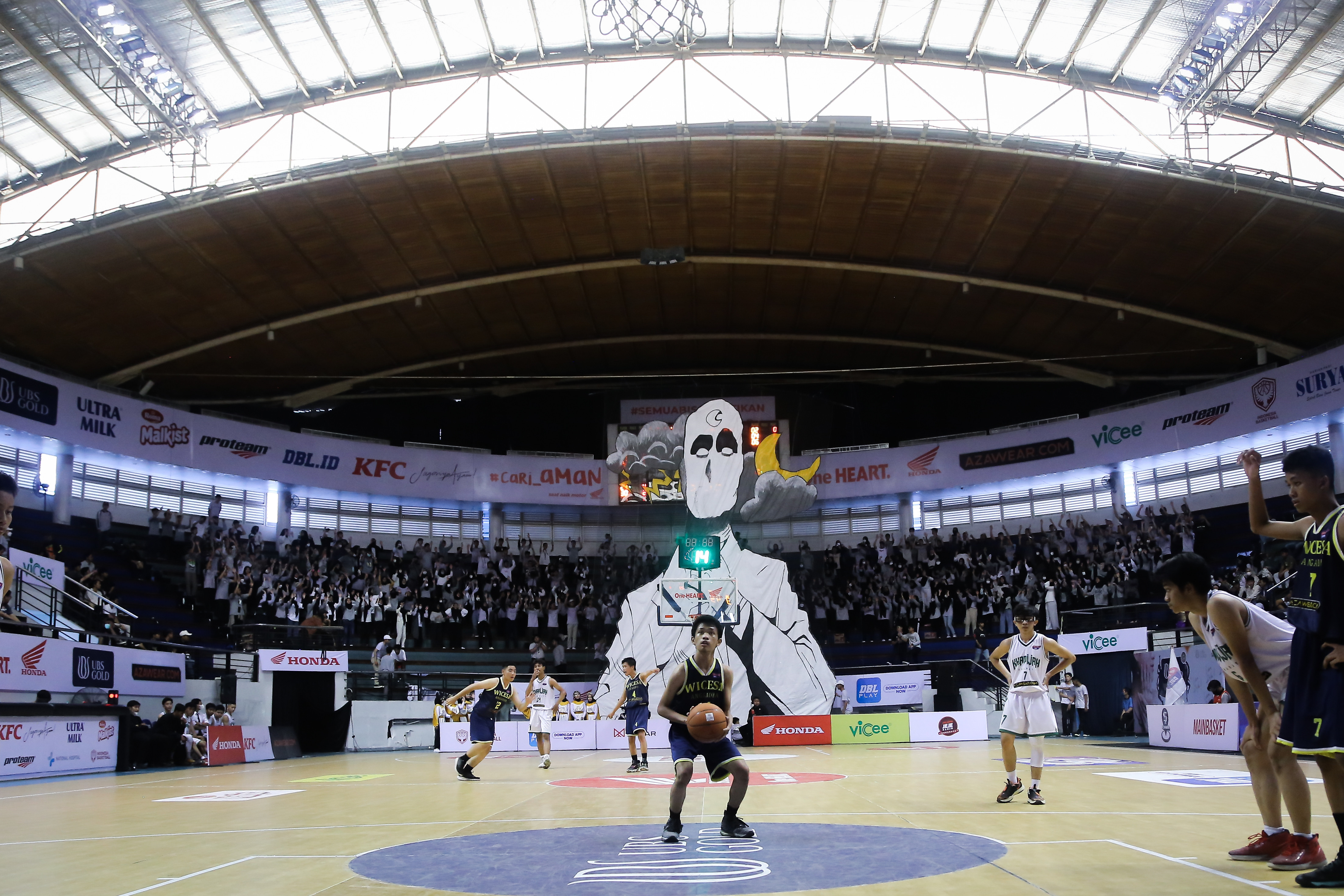 Wayahe Nribun buat DJ Mania (sebutan suporter SMA Khadijah Surabaya) dengan warna abu-abu kebanggaan. DJ Mania mengisi seluruh tribun barat DBL Arena. kedatangan mereka hari ini ialah pertama kali setelah dua musim lamanya tidak merasakan nribun di DBL Arena.