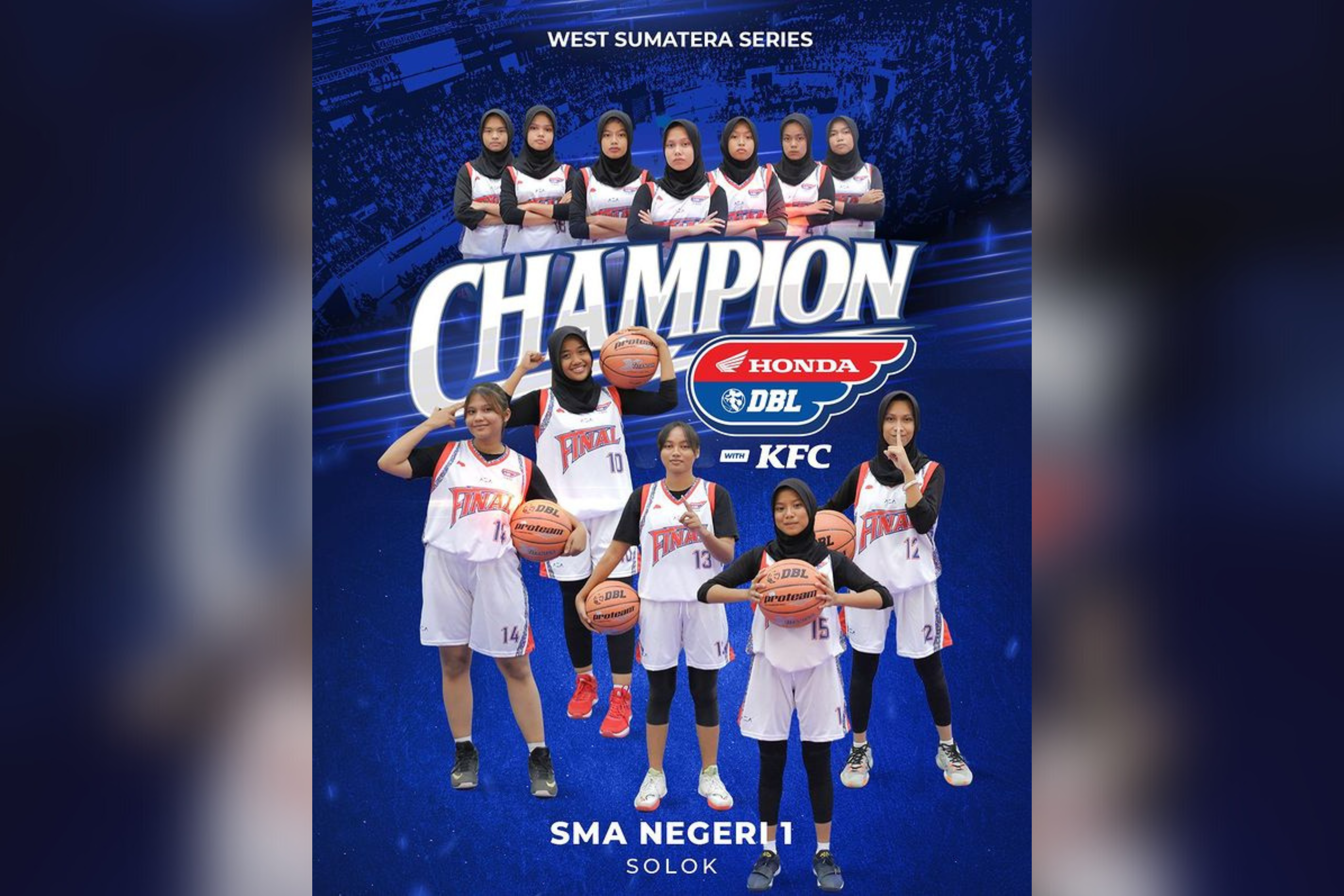 Partai final Honda DBL with KFC 2022 West Sumatera Series telah resmi dibuka, Jumat (27/8). Pertandingan pada sektor putri akan menghadirkan duel antara SMAN 1 Sijunjung melawan SMAN 1 Solok. Smansa Solok secara resmi menjadi kampiun baru Honda DBL with KFC 2022 Sumbar Series setelah mengandaskan perjalanan Smansasi (sebutan SMAN 1 Sijunjung).