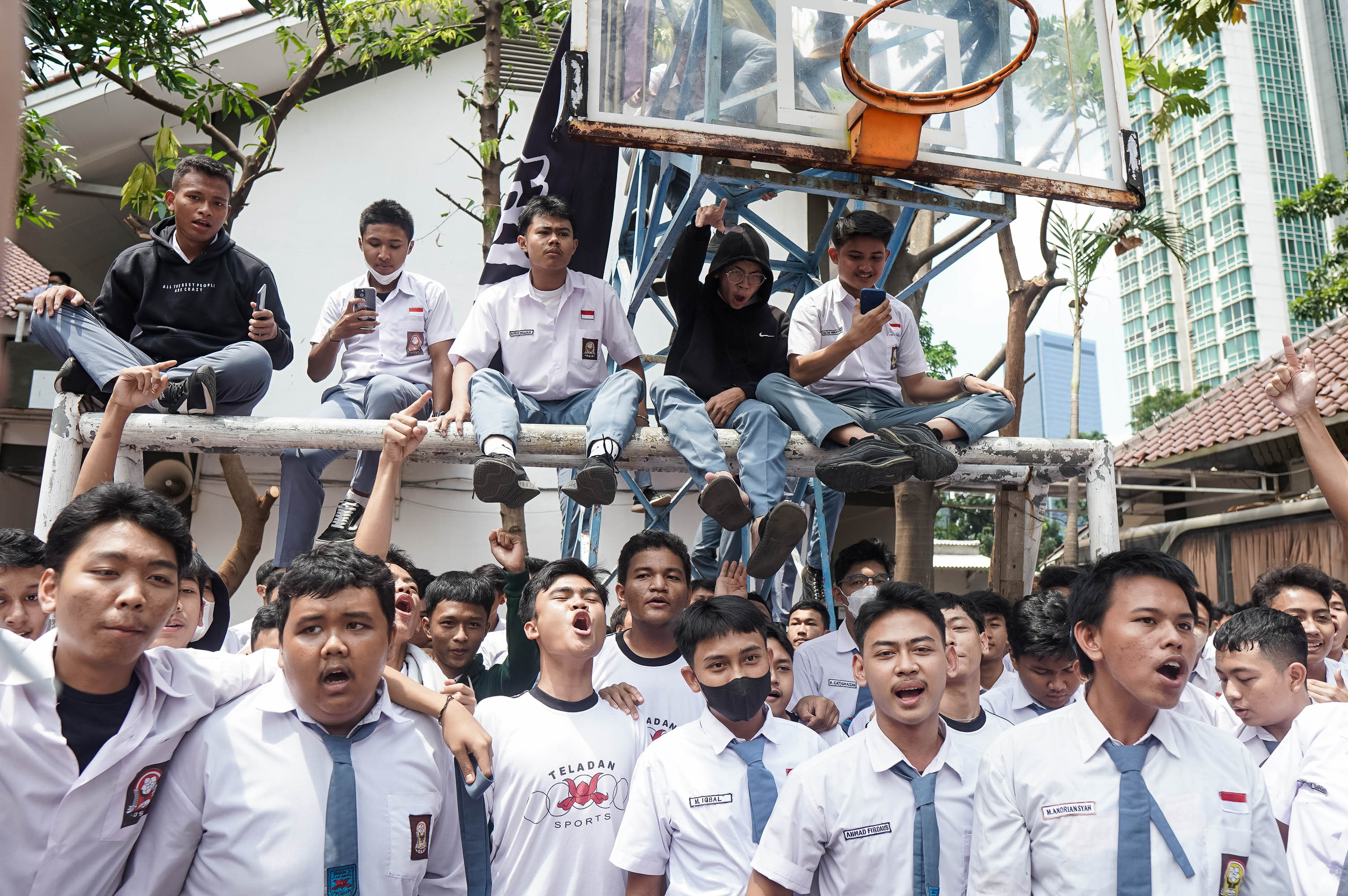 Terdengar suara banyak orang berteriak dari balik lapangan, dentuman drum pun turut mengiringi teriakan mereka. Mereka bersama-sama mulai memasuki lapangan SMAN 3 Jakarta. Panas terik siang itu menyambut kehadiran mereka tanpa digubris sama sekali. Sebab, laki-laki dan perempuan itu sudah larut dalam euforia semangat.