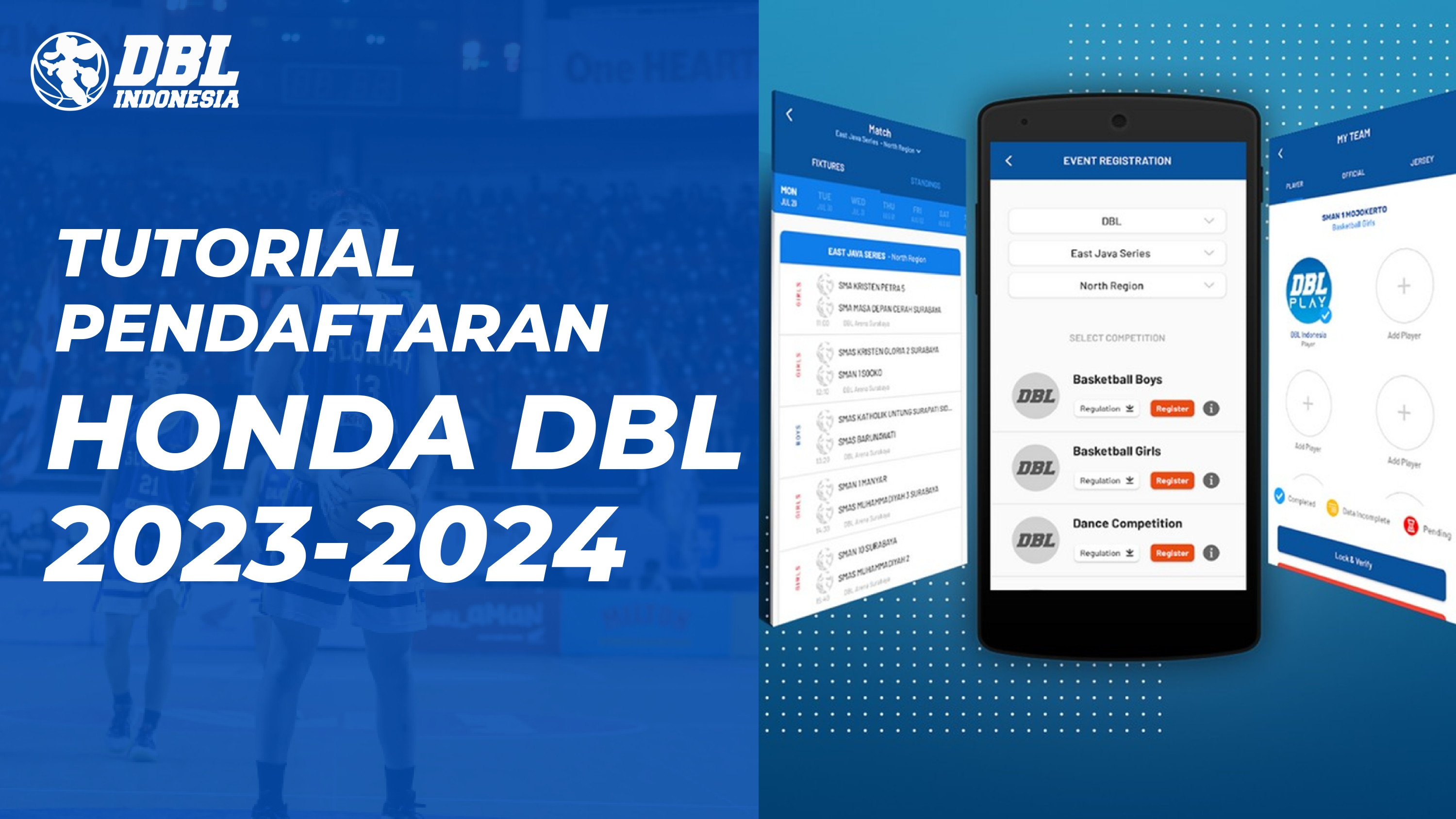 Sebelum mendaftarkan timmu di Honda DBL 2023-2024, pastikan seluruh pemain telah mendownload aplikasi DBL Play. Pemain juga harus mendownload BUNDELAN di menu regulation terlebih dahulu. Periode pendaftaran berlangsung hingga tanggal 30 Juni 2023.