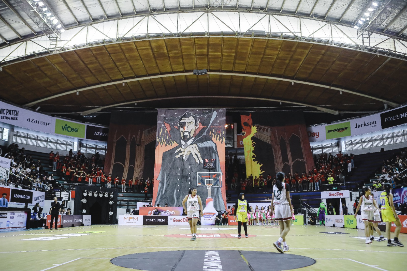 Merah membara! Itulah yang ditunjukkan Unomania, julukan tim suporter SMAN 1 Waru Sidoarjo ketika memenuhi tribun DBL Arena di Opening Party Honda DBL With Kopi Good Day 2023 East Java Series-North Region, Jumat 21 Juli 2023.