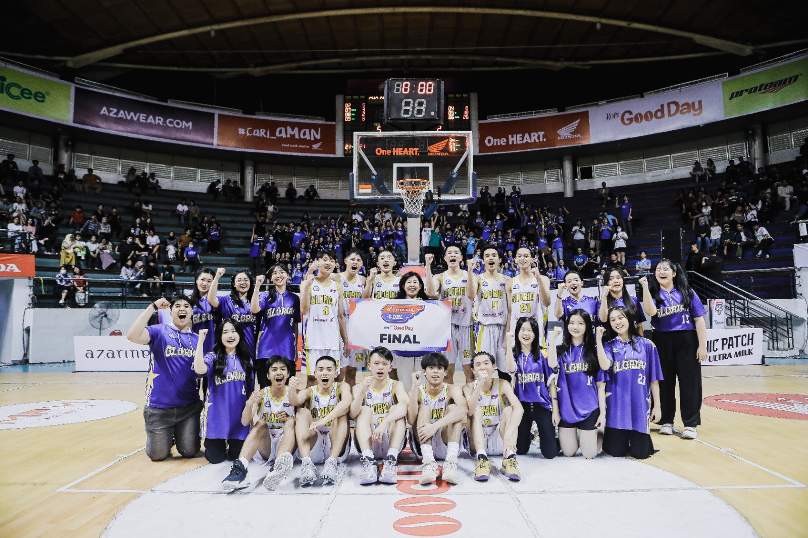 SMA Gloria 1 Surabaya termasuk salah satu kontestan di Honda DBL with Kopi Good Day 2023 East Java Series-North Region. Bukan hanya tim basketnya, tim dance dan suporter dari SMA Gloria 1 Surabaya turut serta meramaikan gelaran DBL Surabaya musim ini.