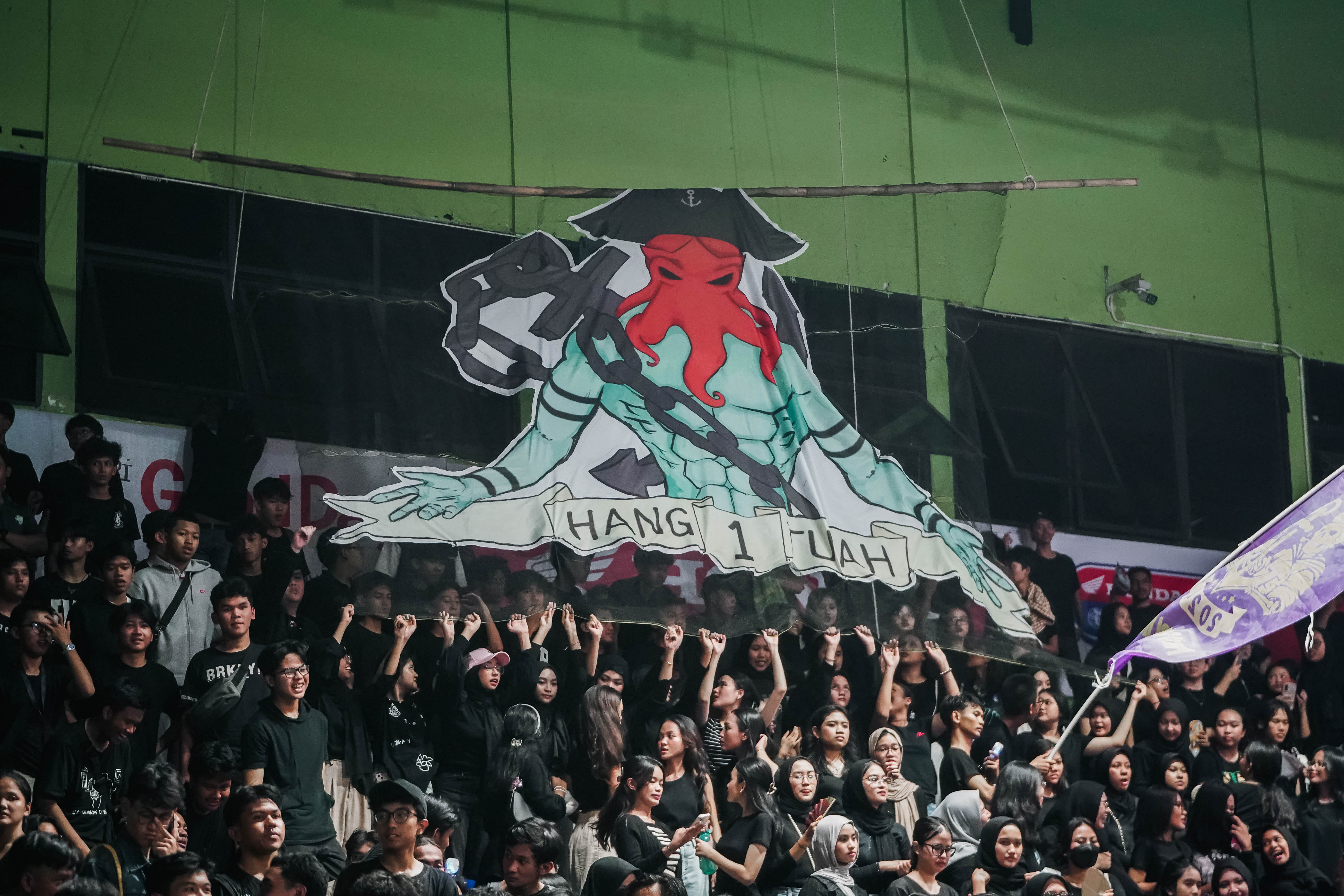 Diketahui bahwa Ultras Hangtoeah memadati GOR Bulungan dengan total 400 pasukan. Koreo serta atribut bendera membuat jalannya laga semakin seru.