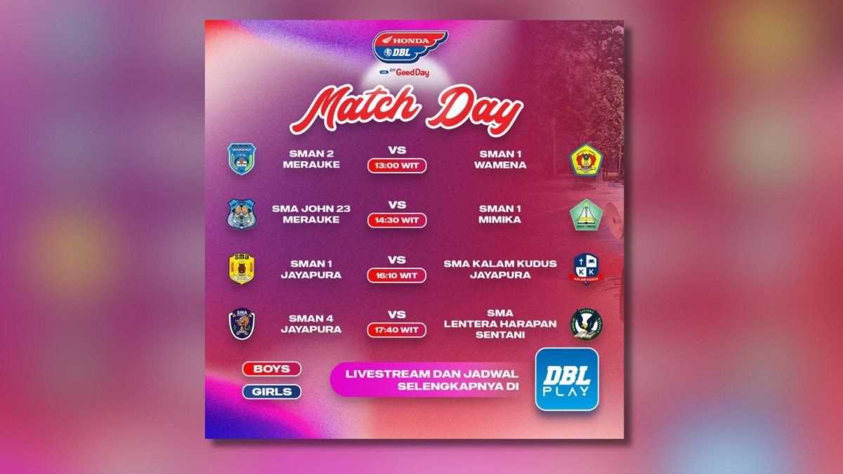 Pertarungan hari pertama rencananaya akan dimulai pukul 13.00 WIT dan ditutup dengan laga terakhir pukul 17.40 WIT. Jadilah saksi dari perjuangan sederet tim terbaik di Honda DBL with Kopi Good Day 2023-2024 Papua Series.