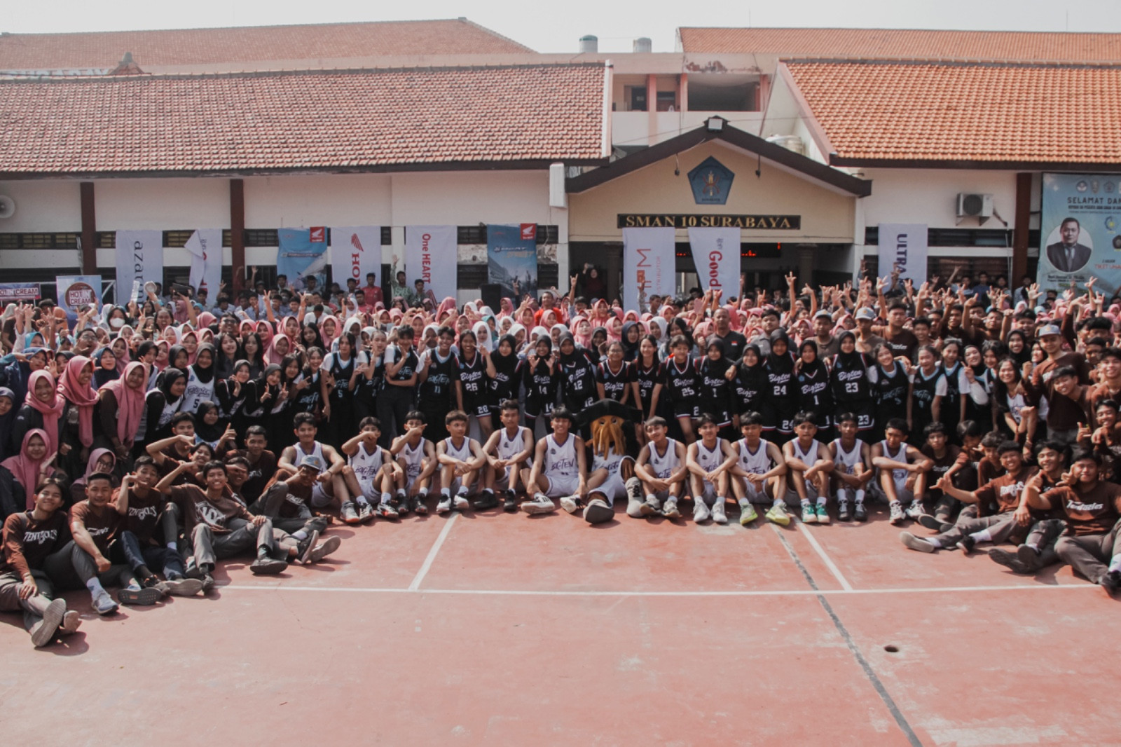 Tak kalah meriah. Semangat pagi warga SMAN 10 Surabaya terpancar jelas ketika menyambut rangkaian Roadshow Bersama menjelang Honda DBL with Kopi Good Day 2024 East Java-North.