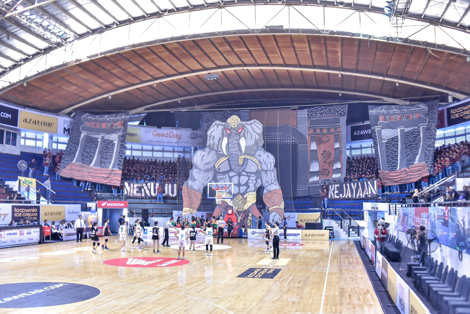 Baru memasuki hari ke-13 Honda DBL with Kopi Good Day 2024 East Java-North, tribun barat DBL Arena sudah diserbu aja nih sama pasukan merah.