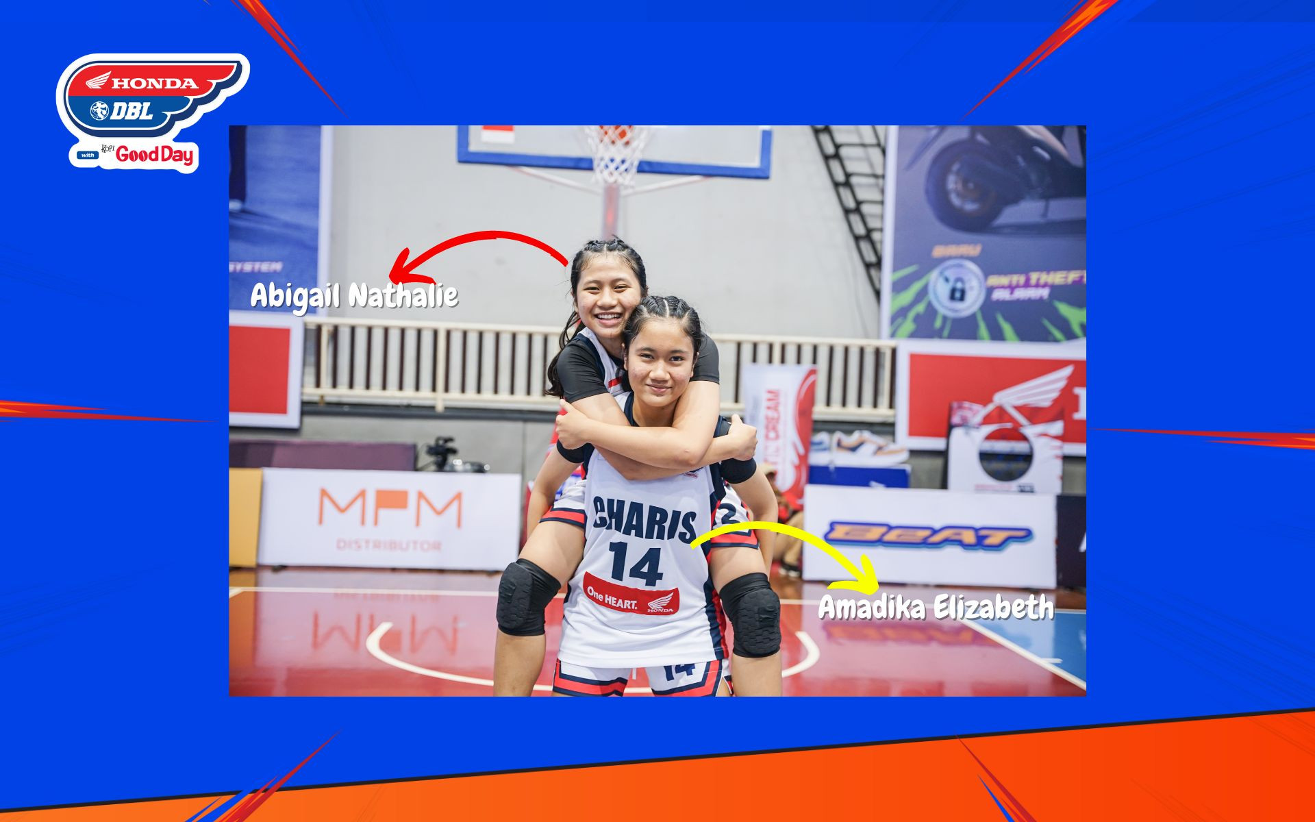 Tim putri SMA Charis National Academy Malang tampaknya punya banyak cerita menarik soal persaudaraan. Dua pemain mereka merupakan saudara kandung yang selisih dua tahun. Mereka adalah Abigail Grace Nathalie dan Amadika Elizabeth.