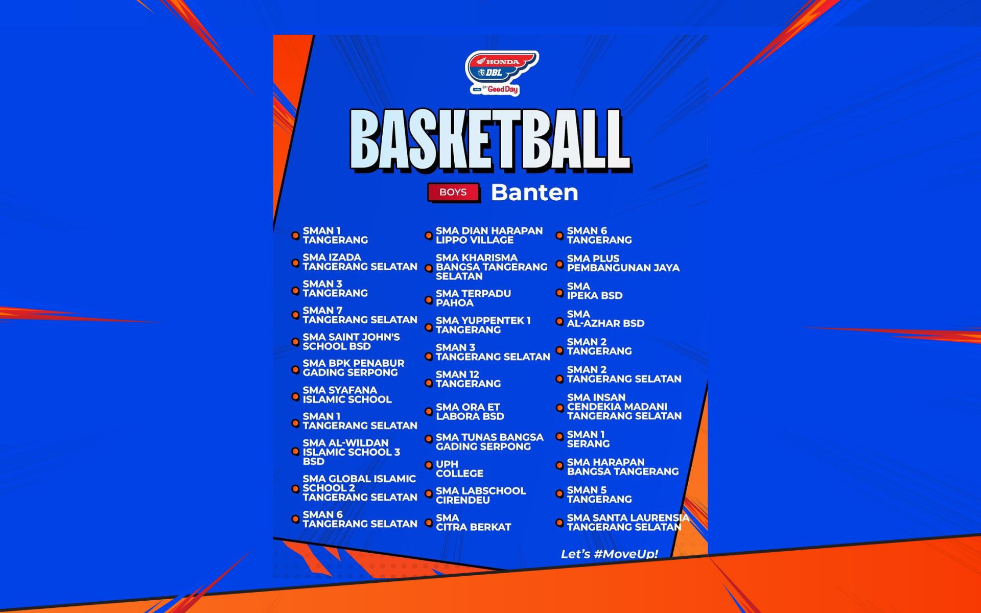 Kembali bergeser ke salah satu wilayah di Pulau Jawa, Honda DBL with Kopi Good Day 2024 Banten bakal menjadi seri terakhir yang berjalan di penghujung 2024. Kembali menunjuk Kota Tangerang sebagai tempat pelaksanaannya, kompetisi ini akan berlangsung di GOR Dimyati Tangerang.