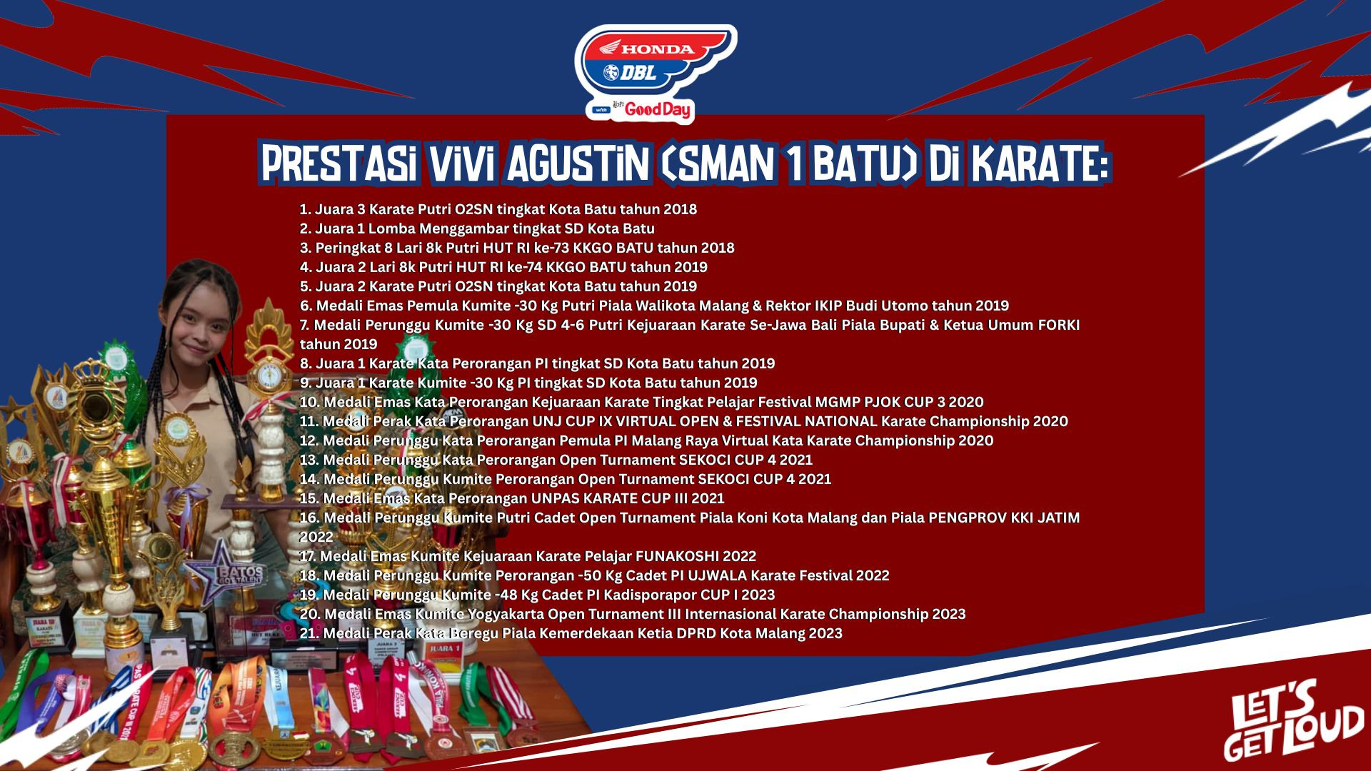 Honda DBL with Kopi Good Day 2025-2026 digelar di 31 kota dan 22 provinsi se-Indonesia. Setiap tahunnya, DBL Indonesia memilih student athlete terbaik dari masing-masing kota untuk diseleksi menjadi DBL Indonesia All-Star melalui program DBL Camp.