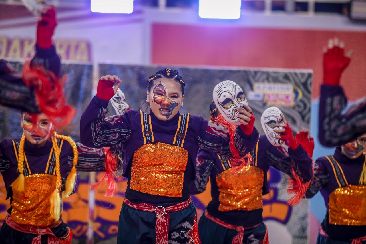 Penampilan tim dance SMAN 4 Jakarta di panggung Azarine DBL Dance Competition 2025 Central Jakarta, pada 5 September 2025