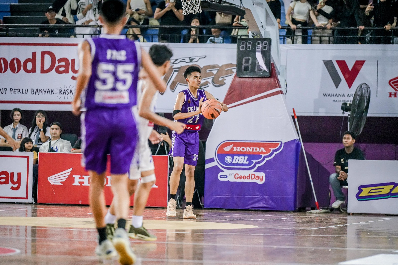 Pertandingan Honda DBL with Kopi Good Day 2025 East Jakarta antara SMAN 89 Jakarta kontra SMA Prestasi Prima (Presma) berakhir dengan kemenangan Presma, skor 45-22.