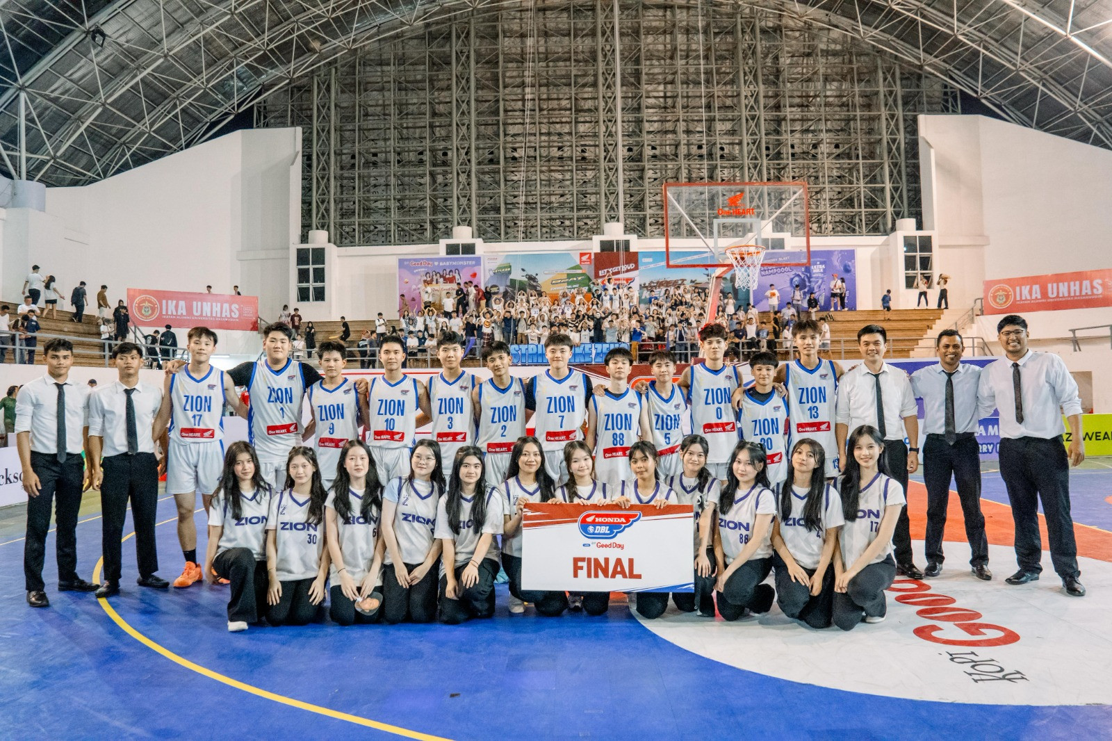 SMA Zion Makassar ke final lagi! Skuad putra Zion melaju ke final Honda DBL with Kopi Good Day 2025 South Sulawesi. Pencapaian ini mengulang cerita mereka musim lalu. Yap, musim lalu Zion melesaat ke final dan menahbiskan diri menjadi juara. Misi mengulang cerita manis musim lalu diusung oleh pasukan Zion.