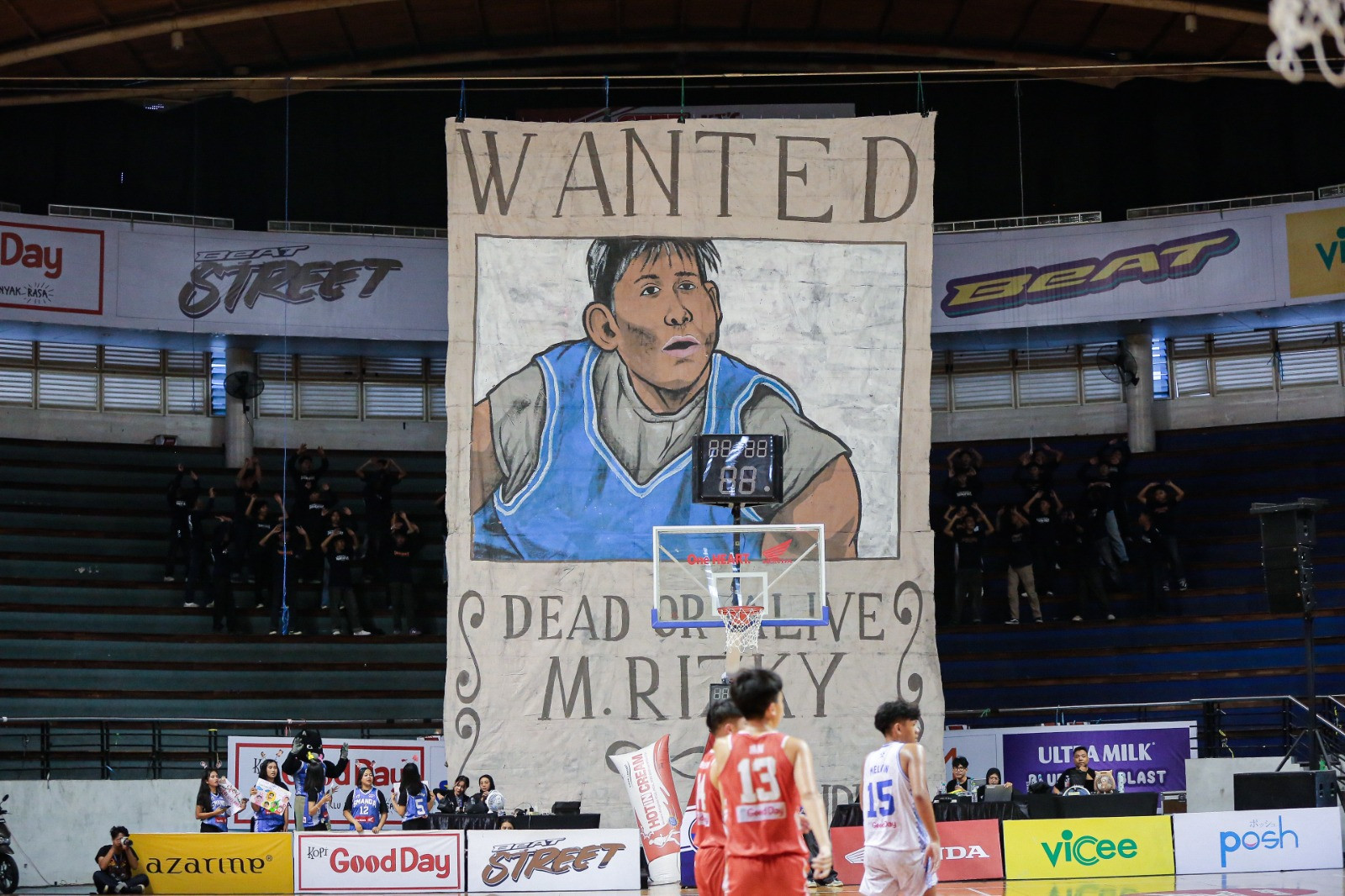 Sebuah surat selebaran layaknya buronan koboi. Bukan, ini bukan dalam konotasi negatif. Tetapi, Smandaforce menggambarkan salah satu anggota tim putra Smanda yang bernama Muhammad Rizky. Pemain bernomor pungung 12 ini menjadi koreografi Smandaforce, lengkap dengan tulisan “WANTED” atau “DICARI”.