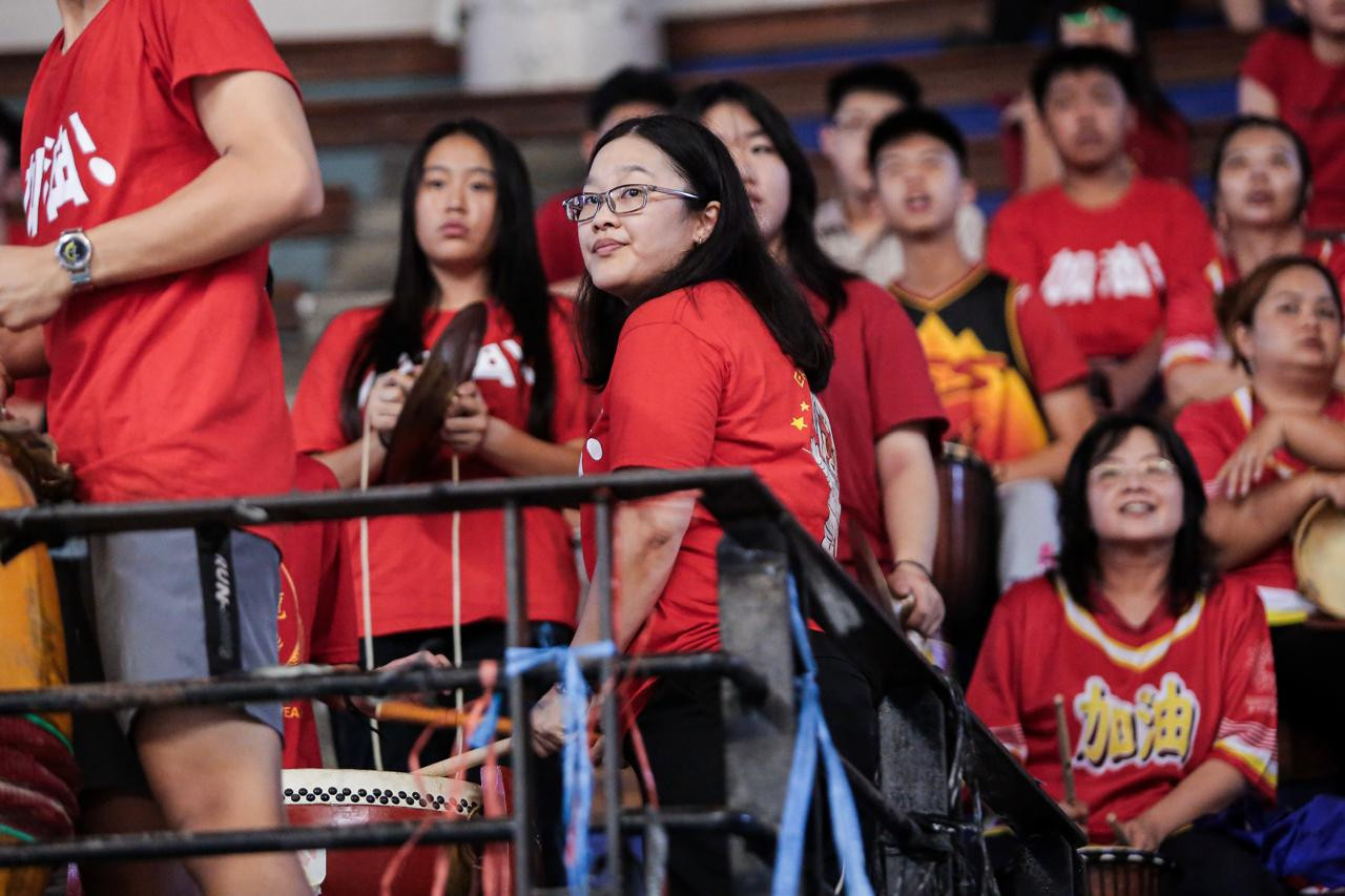 Pasukan berbaju merah ini tidak pernah absen memenuhi tribun. Bahkan, mereka selalu datang dengan membawa berbagai atribut khas seperti alat musik tradisional Tiongkok dan barongsai.