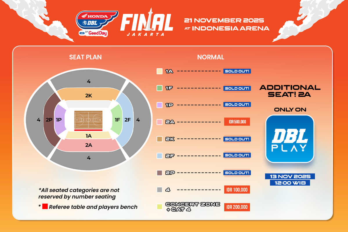 Namun kabar baiknya, DBL Indonesia memberikan kursi tambahan khusus untuk kategori 2A, buat kalian yang belum sempat mengamankan tempat terbaik di Indonesia Arena.