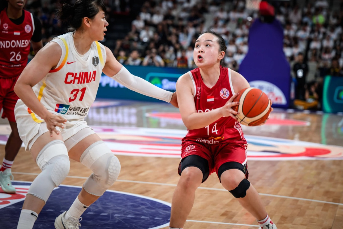 Jessyln Angelique Aritonang (jersey merah) saat membela Indonesia di FIBA Women's Asia Cup 2025 China - Division B