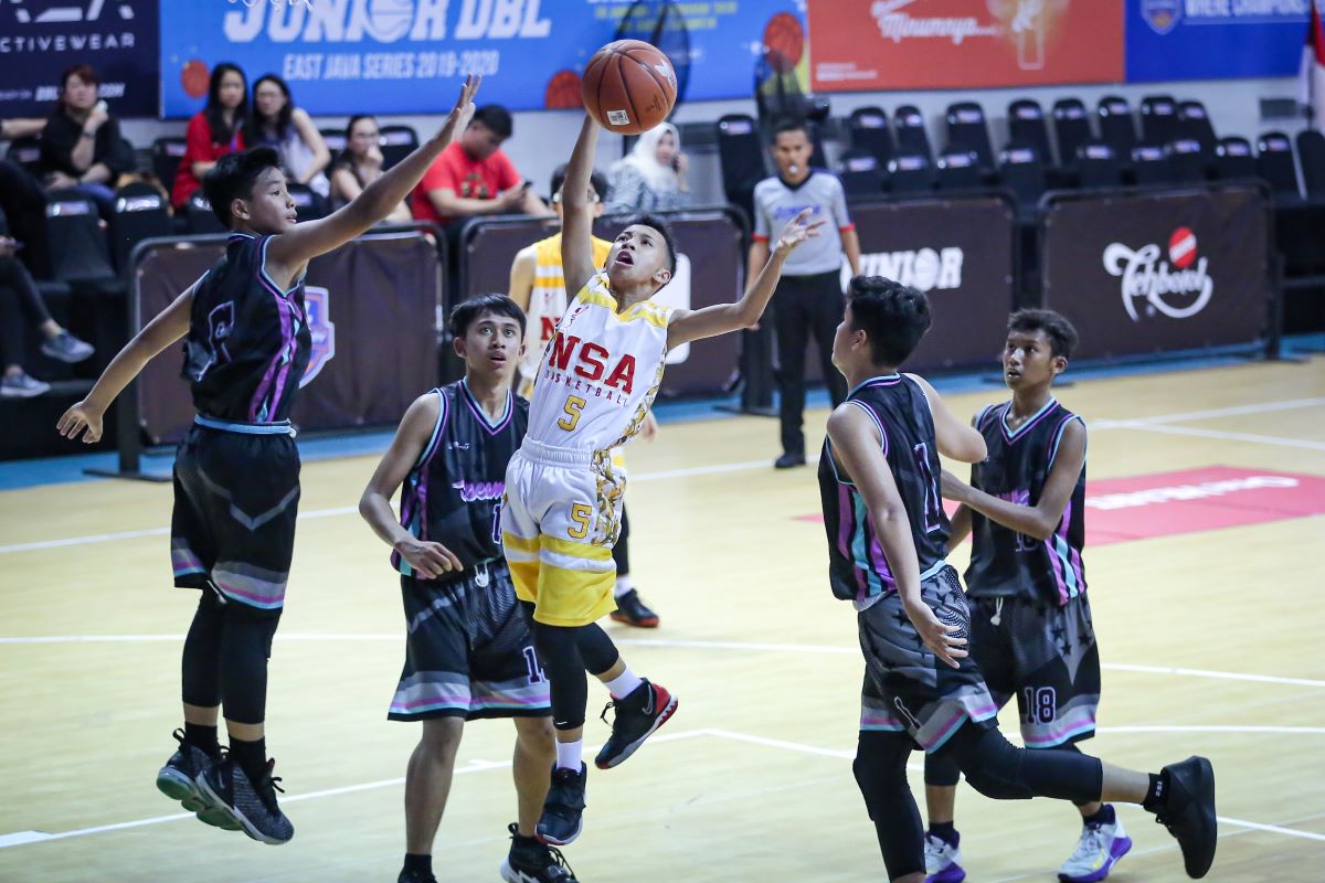 SURABAYA-Meski secara postur Nation Star Academy Surabaya didominasi oleh small man, bukan berarti mereka bisa diremehkan. Melawan SMP Muhammadiyah 5 Surabaya yang didominasi big man, mereka berhasil memenangi laga dengan skor 17-12.