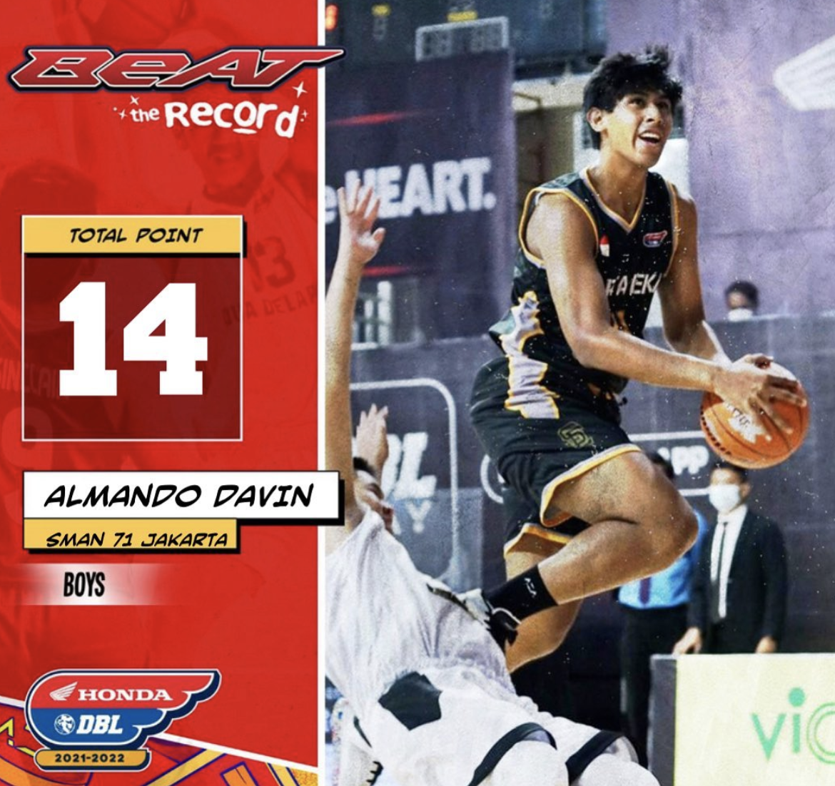 Untuk diketahui, Beat The Record merupakan program baru di Honda DBL musim 2021-2022. Program ini mencatatkan rekor-rekor yang dibuat para pemain DBL di setiap seriesnya, di tiap pertandingan. Rekor tersebut bisa rekor tim atau individu.