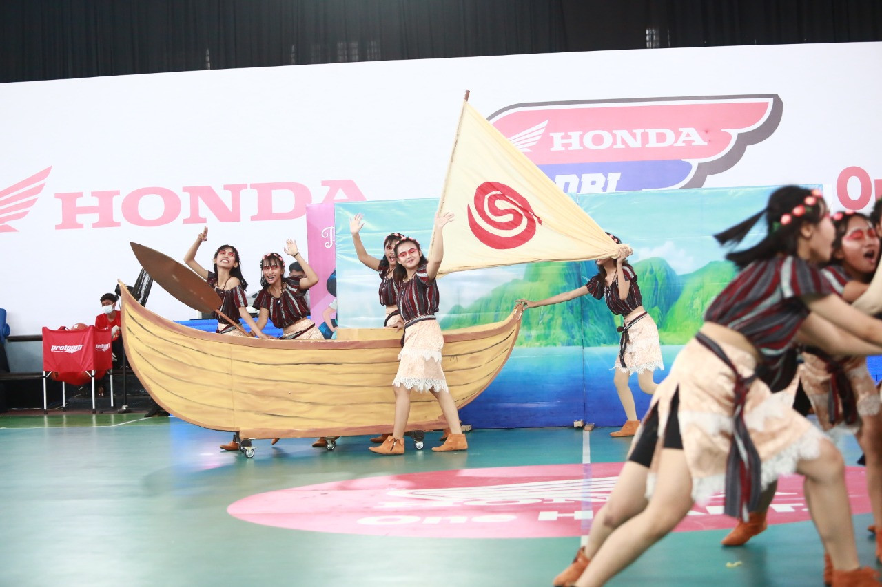 Mengusung tema Disney Princess Moana, Smantigda B-Dance Crew super kreatif. Mereka rela memboyong kapal berukuran tiga meter ke Gelora Pancasila. Sontak kapal yang dicat cokelat serupa kayu itu menarik perhatian.