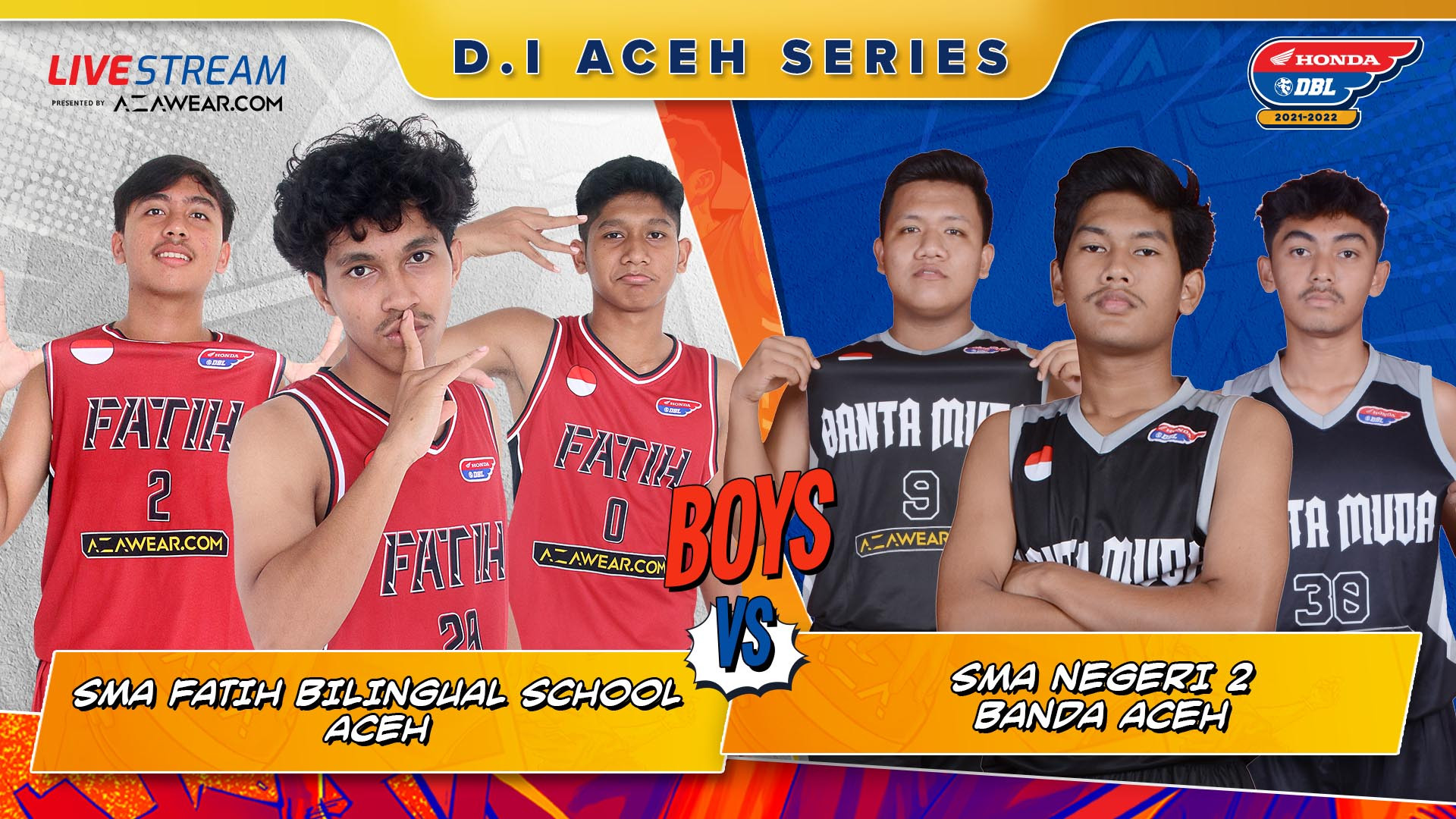 Partai ulangan Honda DBL seri Aceh dua tahun silam bakal tersaji kembali. Mempertemukan tim putra SMA Fatih Bilingual School (FBS) kontra SMAN 2 Banda Aceh (Banta Muda). Pertandingan terakhir Honda DBL 2021 Aceh Series hari kedua ini akan disiarkan langsung via aplikasi DBL Play mulai pukul 16:45 WIB sore nanti.