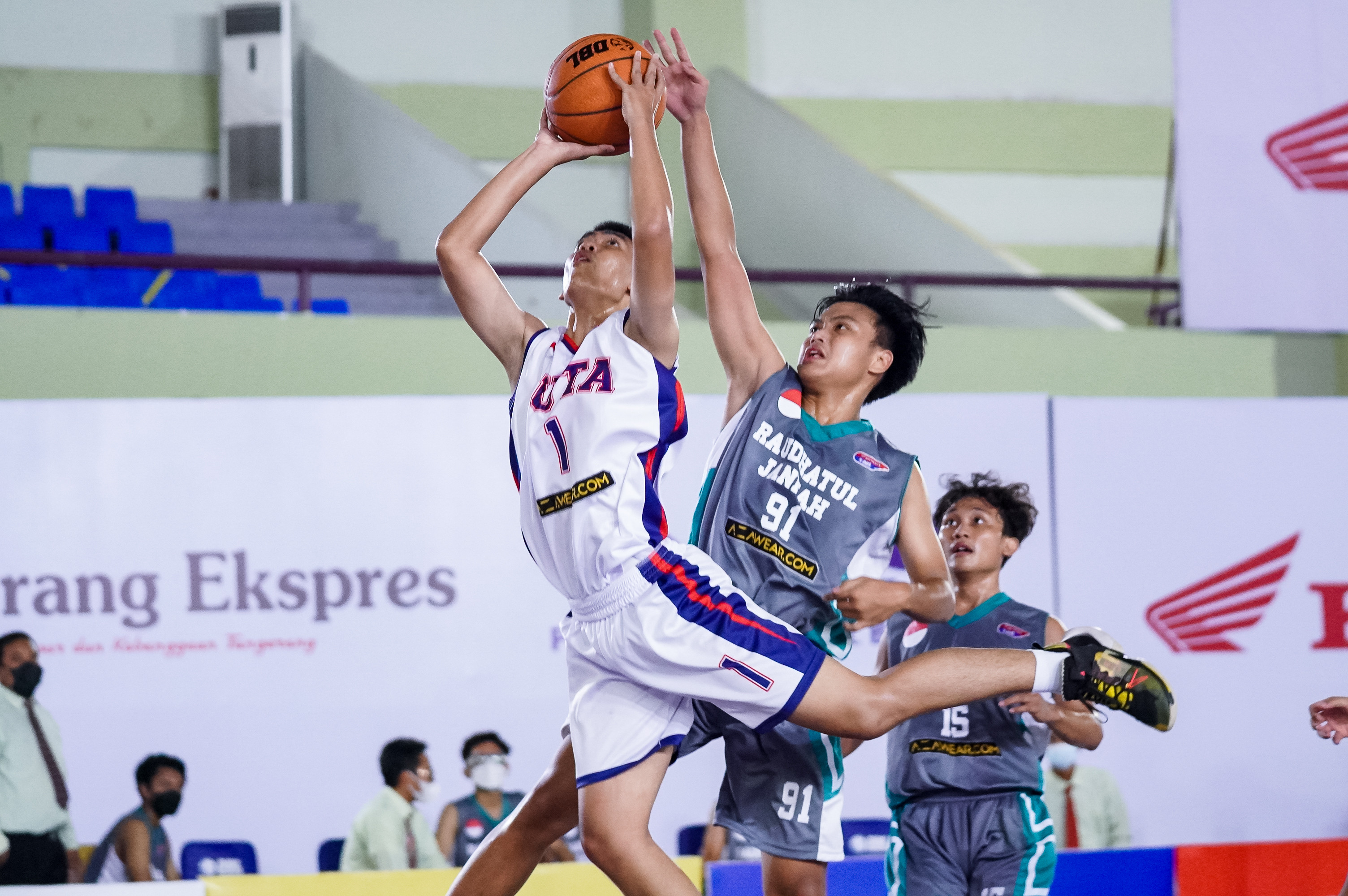 Tim putra SMAN 2 Kota Tangerang (Duta) menunjukkan kerperkasaannya di hadapan SMA IT Raudhatul Jannah petang tadi. Duta sukses memenangi laga hari ini dengan skor 53-21 atas Raudhatul Jannah. Kedua belas pemain mereka, juga rata. Semua pemain, starting line up dan bench semuanya mencetak poin.