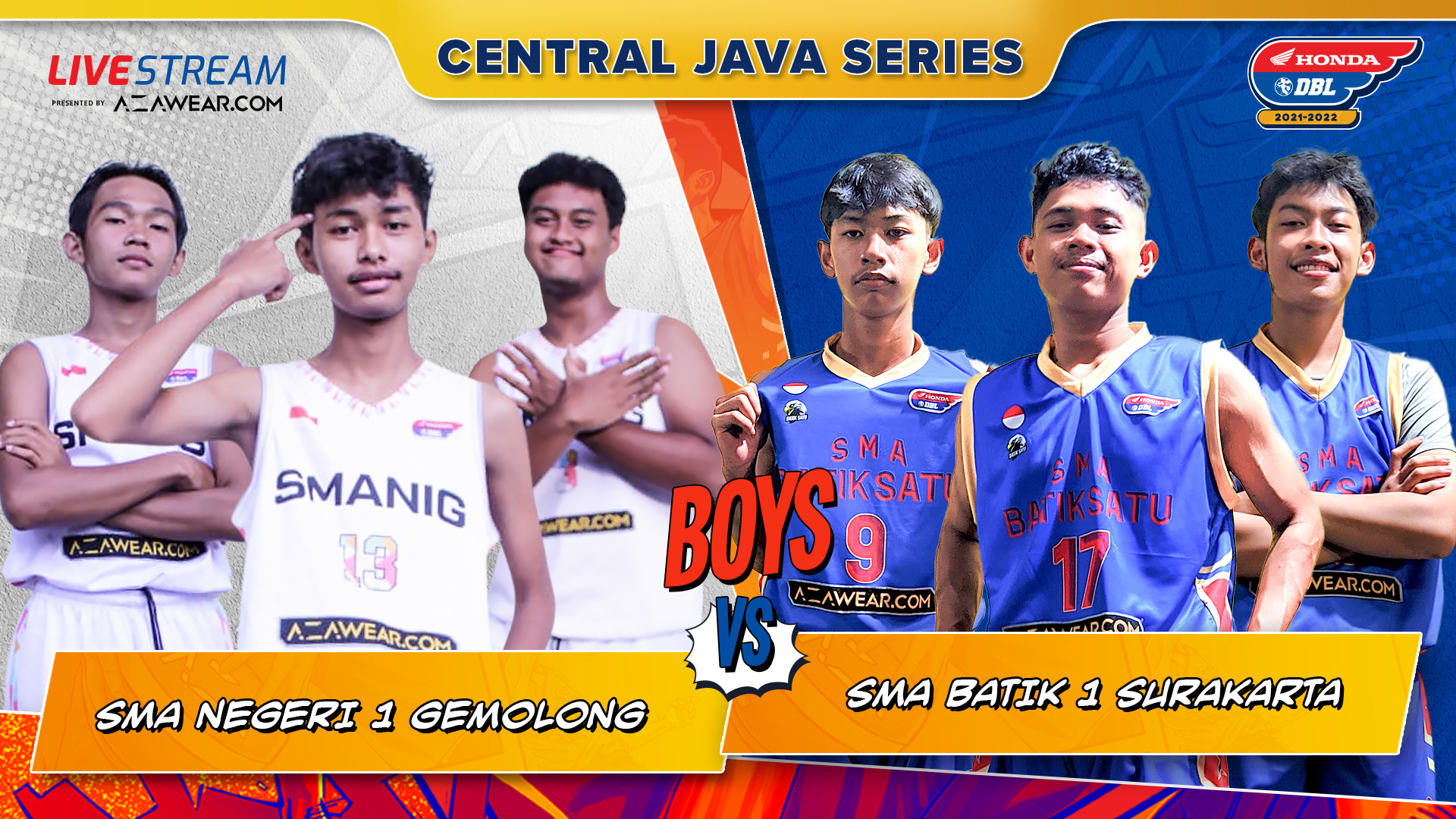 Lanjutan Honda DBL 2021 Central Java Series di hari kedua Jumat (28/1) akan dibuka oleh pertandingan antara SMAN 1 Gemolong versus SMA Batik 1 Surakarta. Tip off keduanya akan dilakukan pukul 14.00 WIB siang nanti di Sritex Arena, Surakarta. Pertandingan ini akan disiarkan live streaming via aplikasi DBL Play.