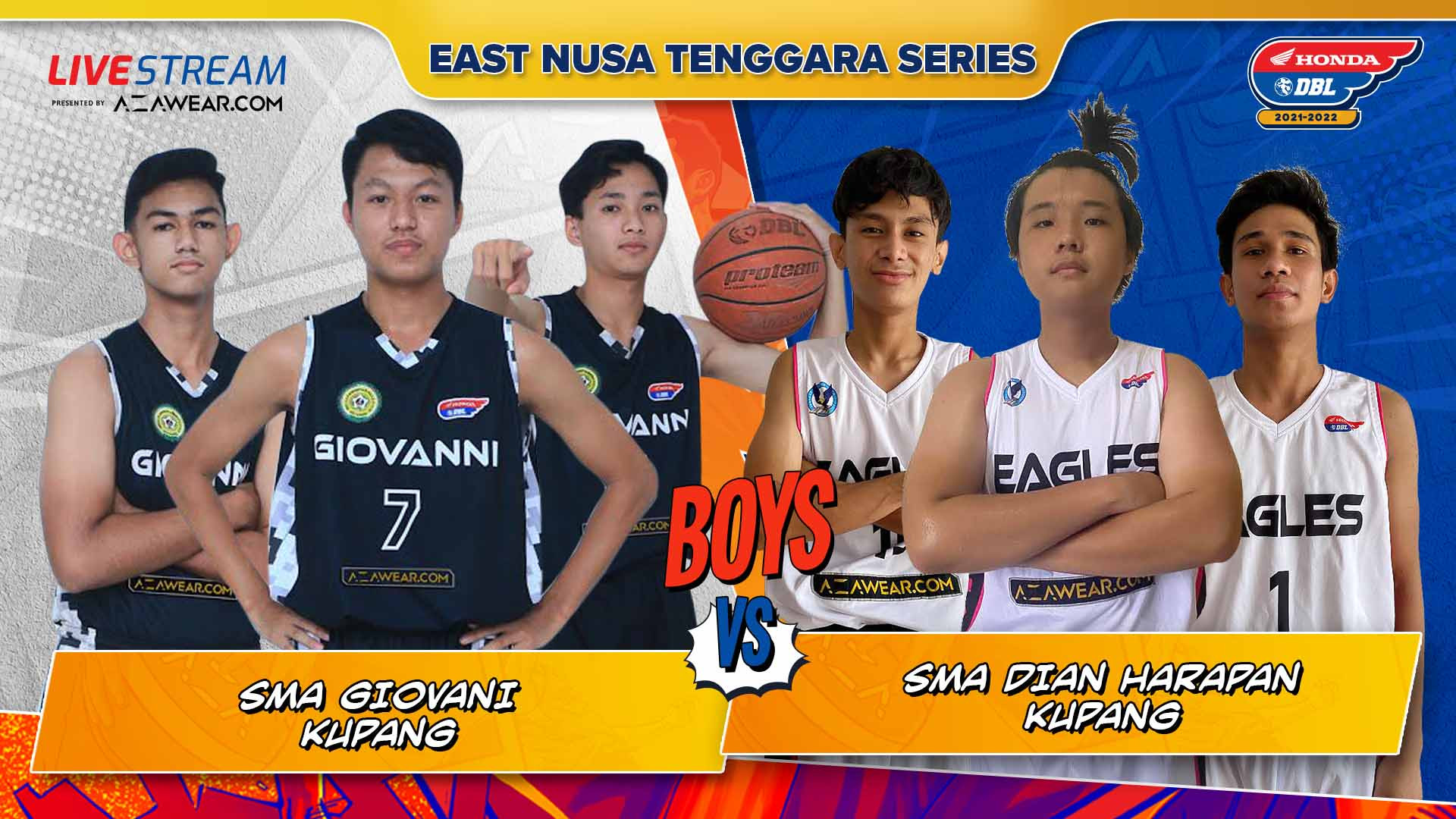 Tim putra SMA Giovani Kupang akan melakoni ujian perdana mereka melawan SMA Dian Harapan Kupang (Eagles) di Opening party Honda DBL 2021 East Nusa Tenggara Series, pukul 18.00 WITA sore nanti. Partai kedua tim ini sekaligus menjadi laga terakhir di hari pertama.